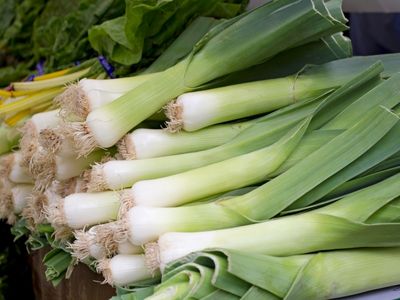 Leeks are mild, sweet, onion-like vegetables with long white stalks and green tops. They add delicate flavor to soups, curries, and stir-fries and are rich in vitamins A, C, K, and antioxidants.